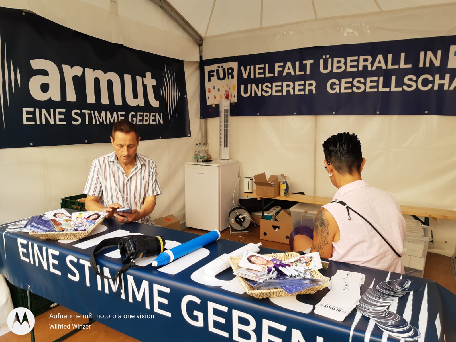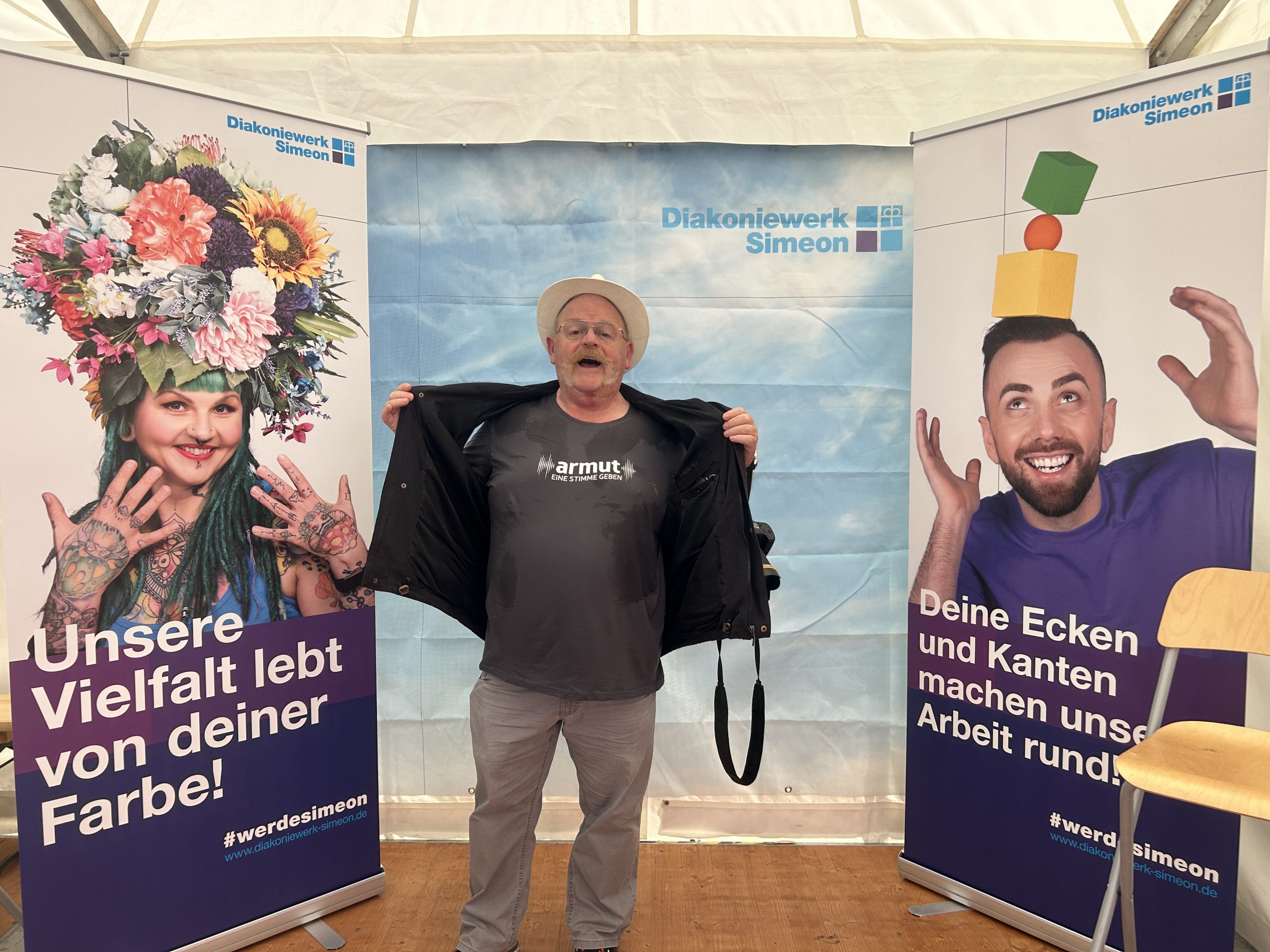 Das Diakoniewerk Simeon, in Kooperation mit der Aktion „Armut eine Stimme geben!“ (Eine Initiative des evangelischen Kirchenkreis Neukölln und dem Diakoniewerk Simeon) waren ebenso mit vertreten und konnten mit hunderten Interessierten sprechen. Wieder mit dabei die mittlerweile berühmte Fotowand, wo sich, wie jedes Jahr, unzählige Besucherinnen und Besucher ablichten ließen.