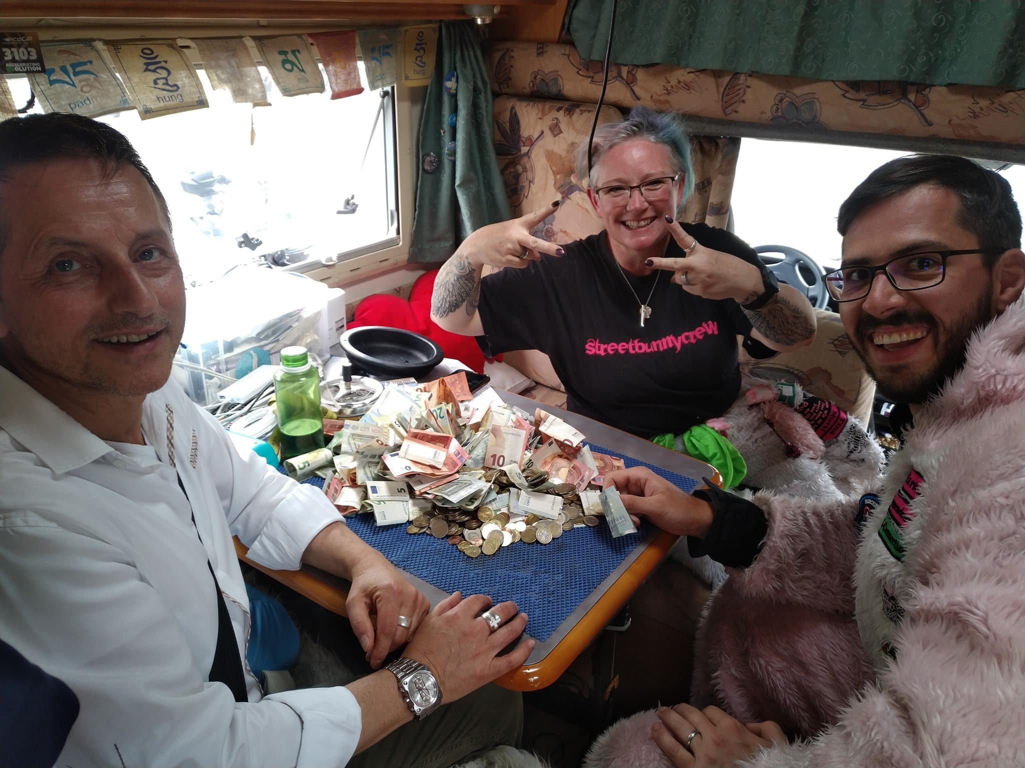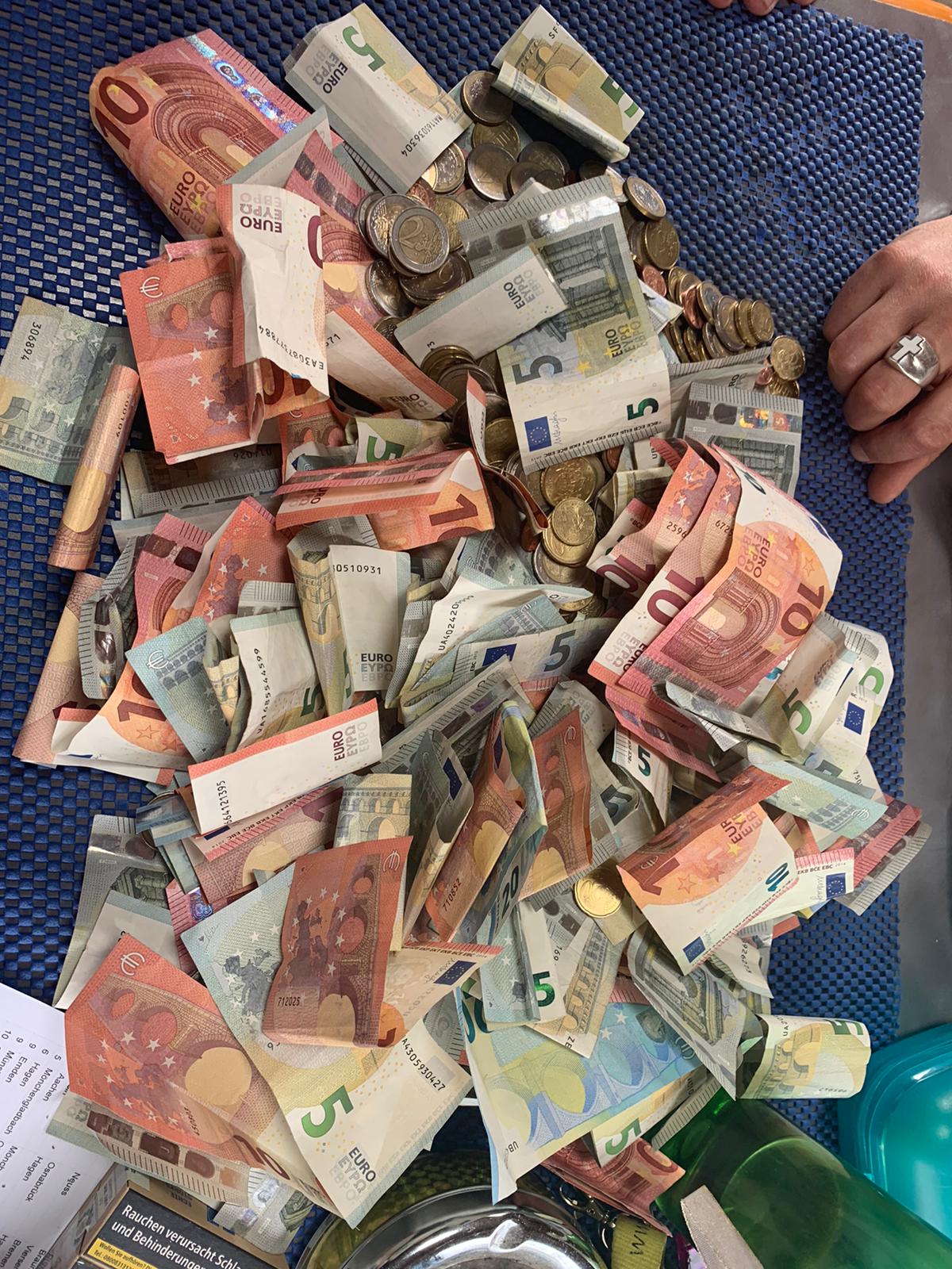 Im Beisein des Armutsbeauftragten Thomas de Vachroi der Diakoniewerk Simeon gGmbH wurden die eingesammelten Gelder im Wohnmobil „Friedenspanzer“ gezählt.
