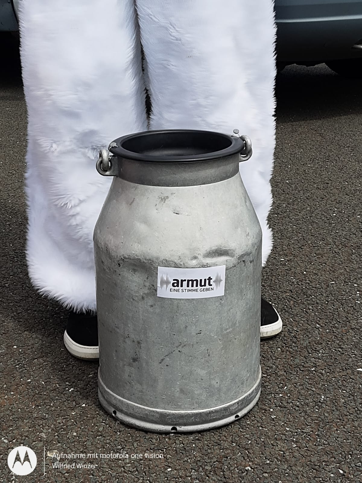 Für die Spenden hatte man eigens eine alte Milchkanne umfunktioniert und mit dem Logo „Armut eine Stimme geben!“ versehen. Es wurden insgesamt 1.512,27€ gespendet.