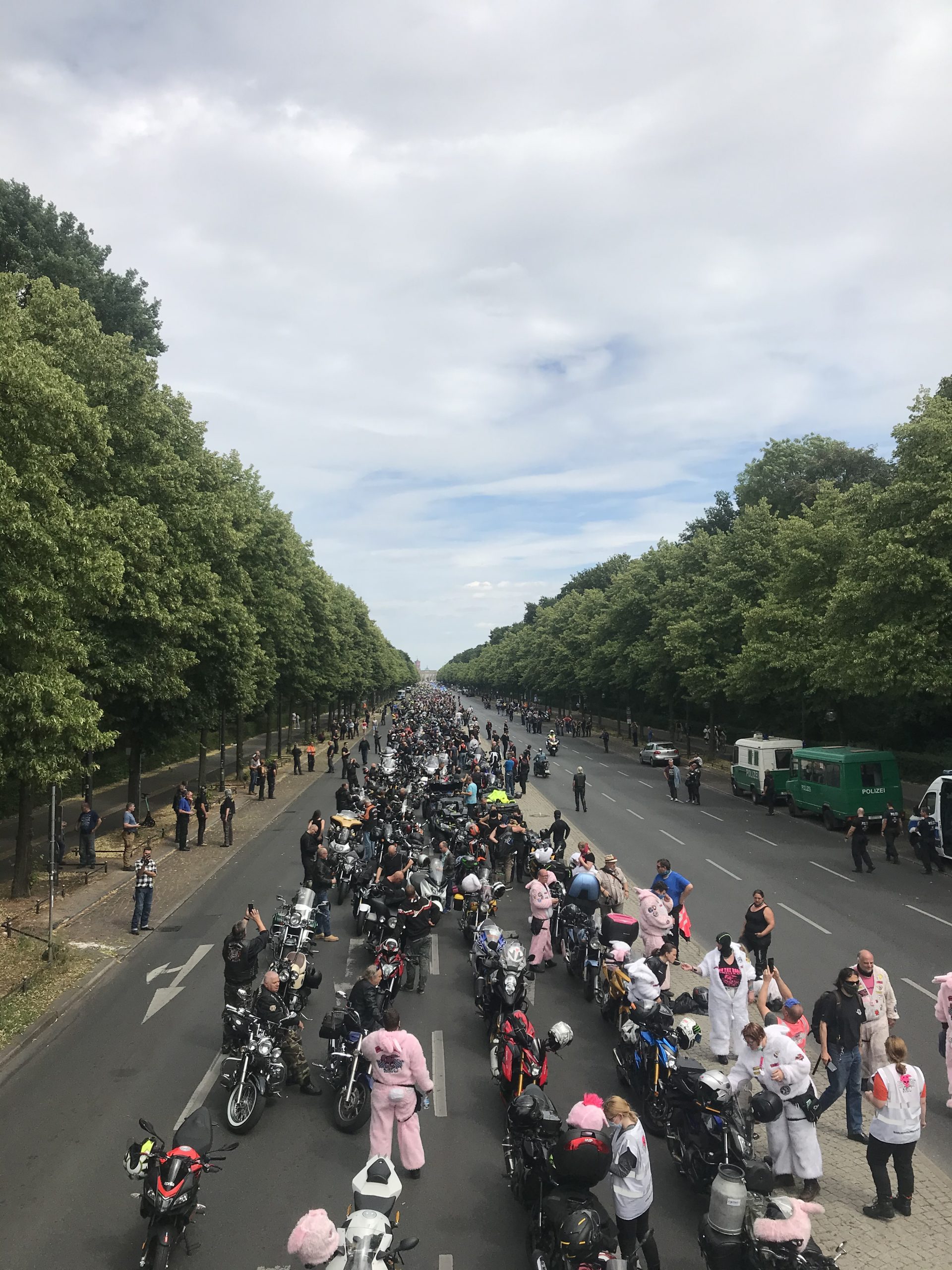 Auch in Berlin sind über Eintausend Biker zusammengekommen. Eine kleine Kundgebung gab es an der Siegessäule. Auch die Streetbunnycrew als gemeinnütziger Verein sind kaum Handlungsfähig, wenn sie an Sonn- und Feiertagen nicht mehr fahren dürfen.