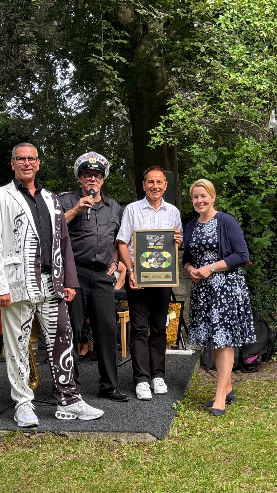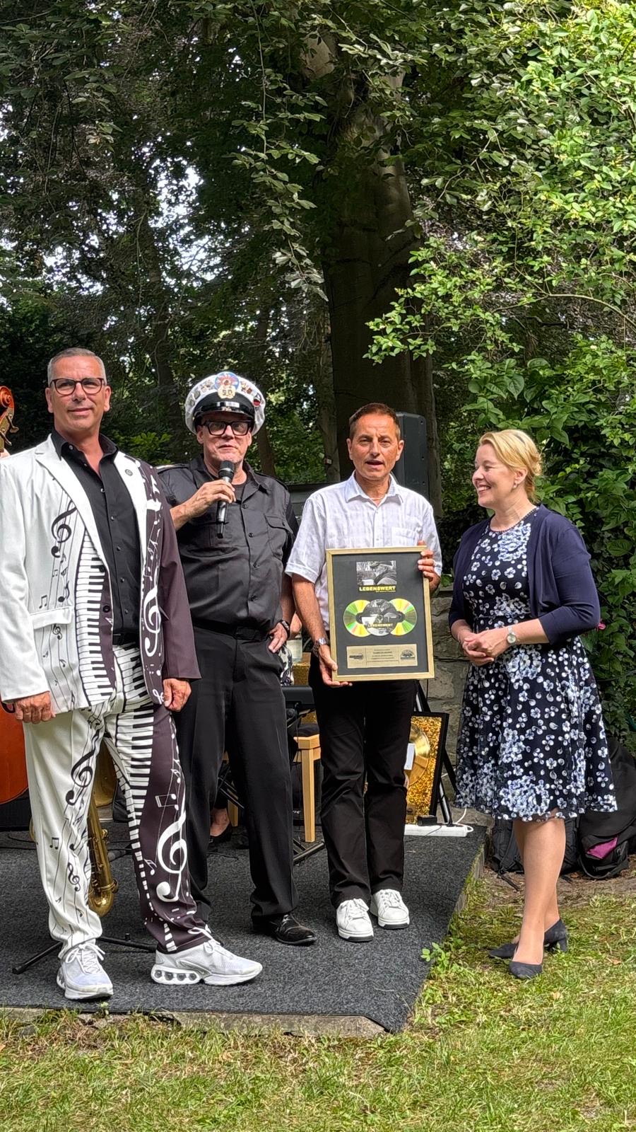 Ein besonderes Highlight war die Anwesenheit des Ehrengastes, Wirtschaftssenatorin und stellvertretende Bürgermeisterin Franziska Giffey, die die Bedeutung des gesellschaftlichen Engagements der Loge würdigte und gemeinsam mit Ralph Kartelmeyer die Verleihung der goldenen CDs für den bewegenden Dokumentarfilm „Der Lebenswert“ an den Armutsbeauftragten Thomas de Vachroi vornahm.