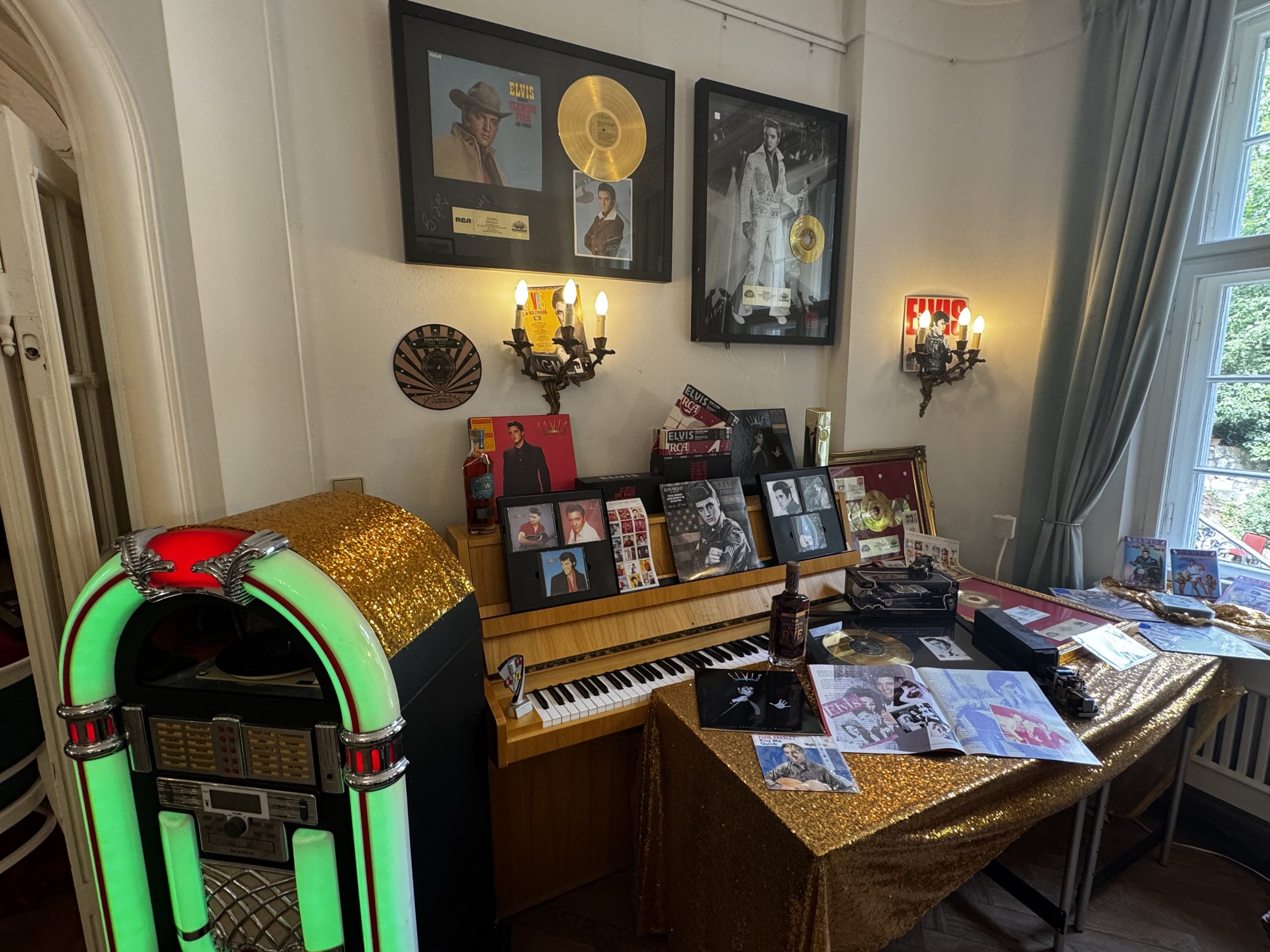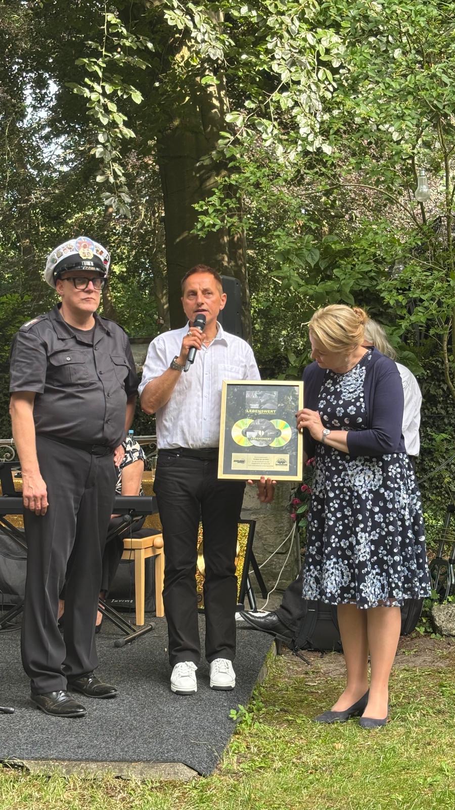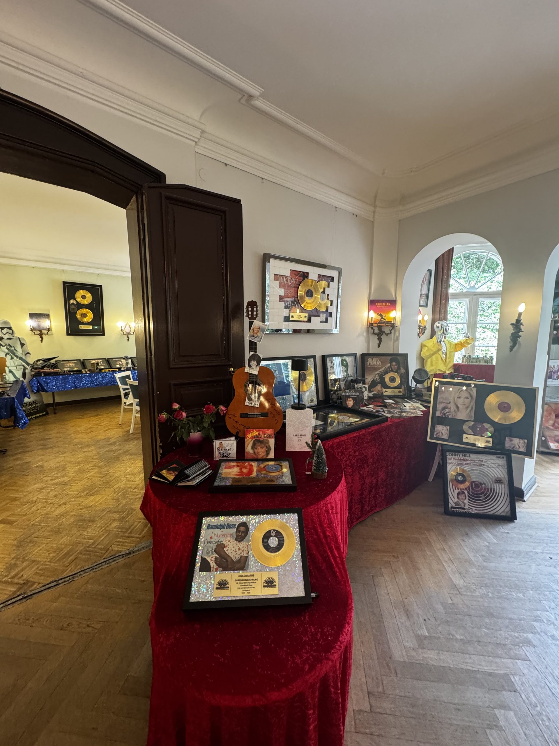 Im Haus konnten die Gäste die zahlreichen Exponate der Ausstellung bewundern. Goldene Schallplatten für Elvis Presley, Jerry Lee Lewis, Udo Lindenberg, Helene Fischer und vielen anderen Musikschaffenden, sowie für Soundtracks von „Star Wars“, „Harry Potter“, „Zurück in die Zukunft“ und vielen weiteren cineastischen Blockbustern konnten bestaunt werden. Untermeister Ralph Kartelmeyer wird in den Sommerferien nach Emden reisen und dort eine goldene Schallplatte an Otto Waalkes für über 50 Jahre Bühnenwerk verleihen.