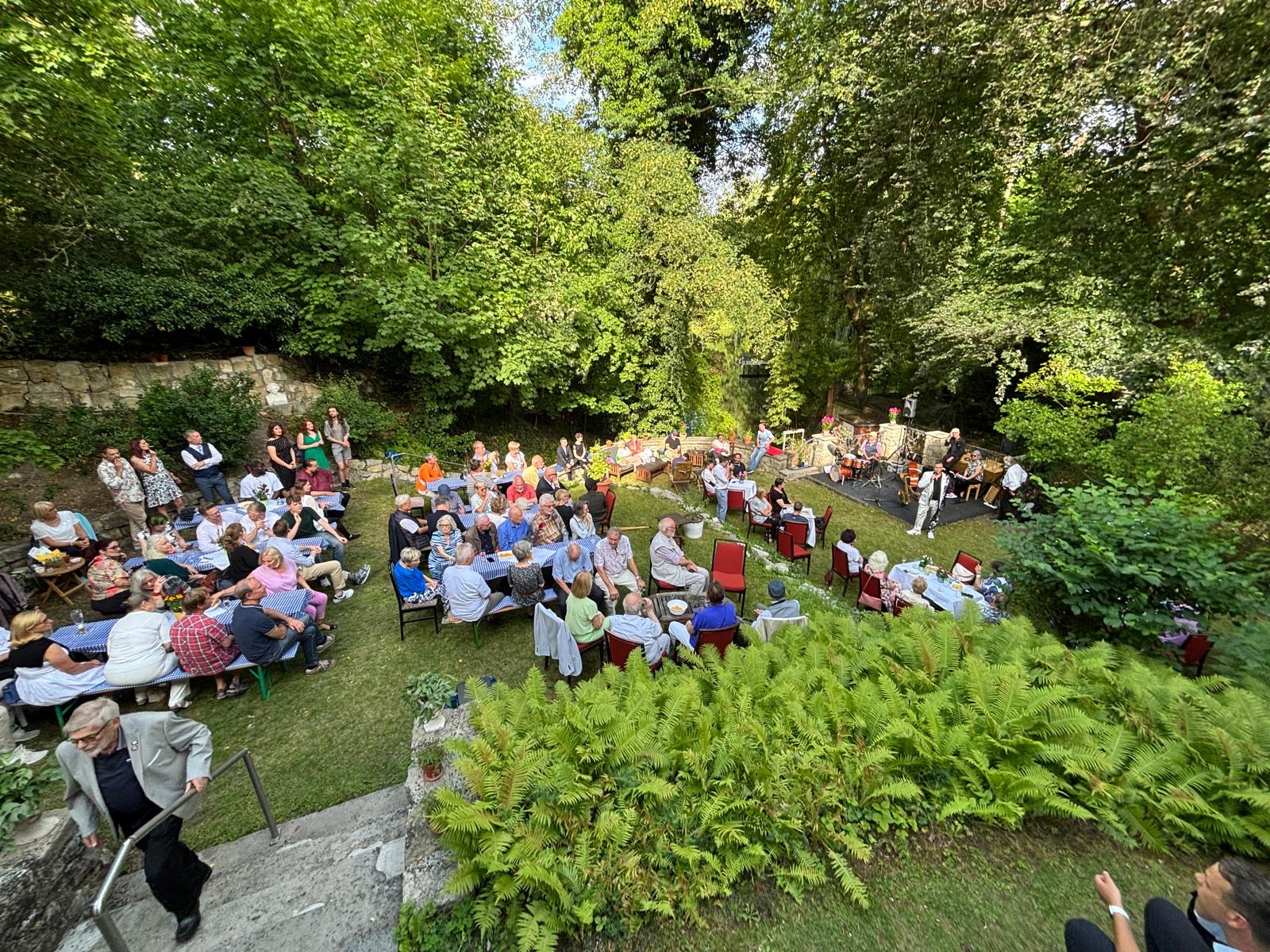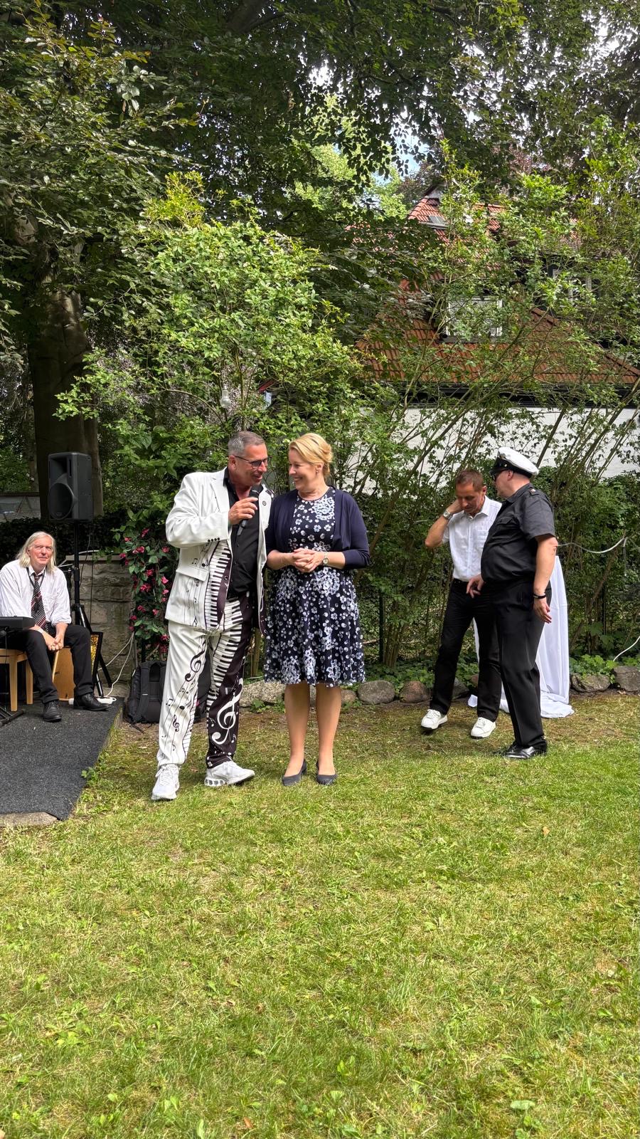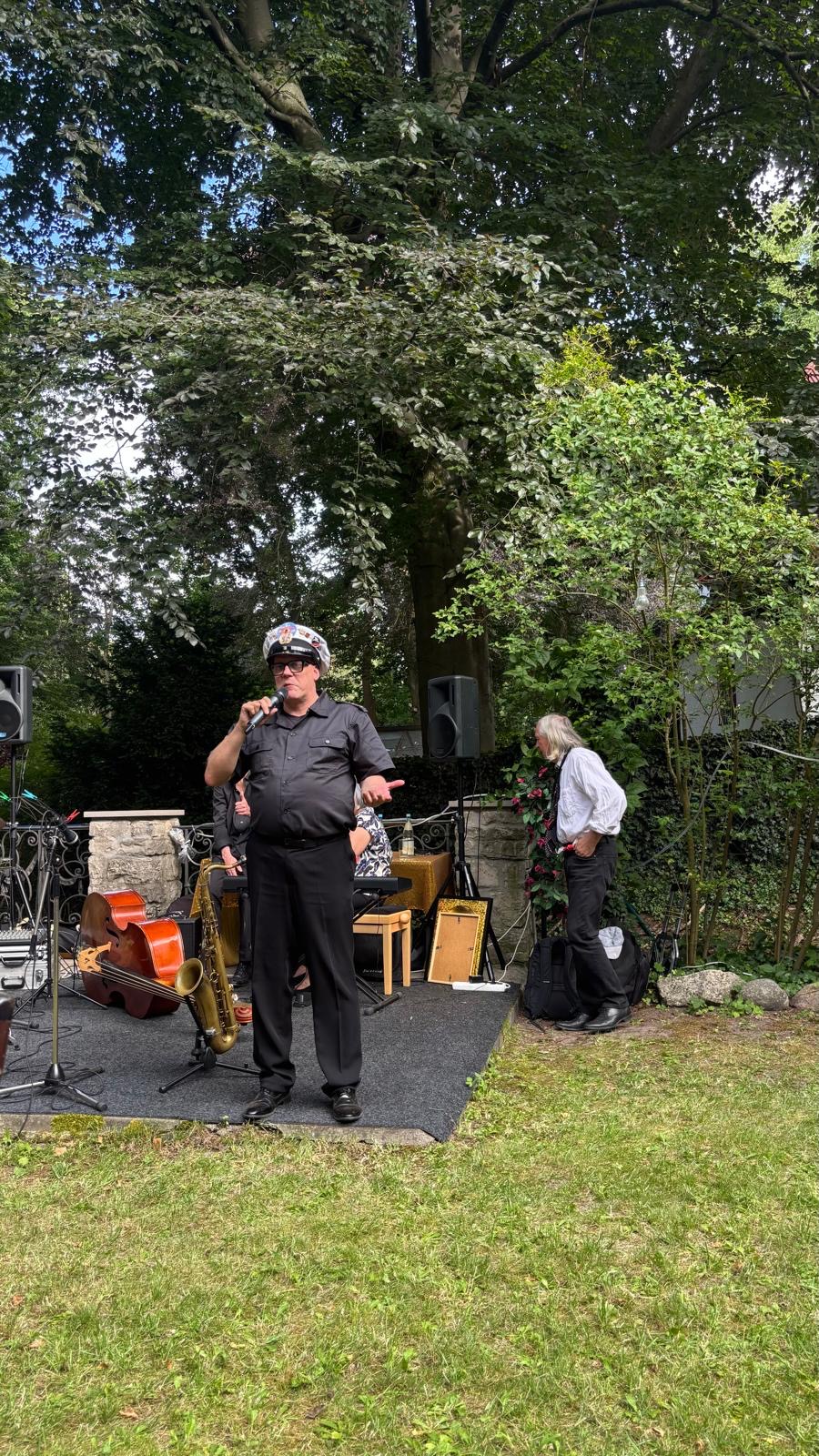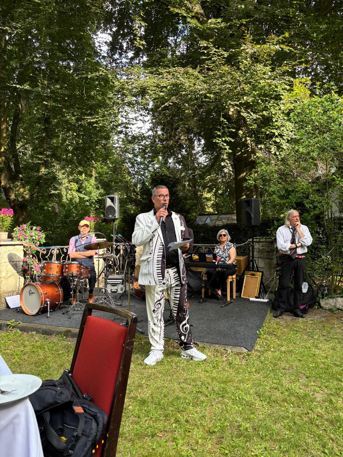 Musikalisch wurde die Veranstaltung vom „Cookie Club Quartett“ mit Jazz und Swing Musik, dem „singenden Fliesenleger“ Felix Jäntsch und seiner Partnerin Esmeralda la Barbera mit Arien aus der „Zauberflöte“, sowie dem Violinisten Ofer Löwinger begleitet. Als besondere Überraschung gab auch der „singende Untermeister“ Ralph Kartelmeyer einige seiner Songs zum Besten.