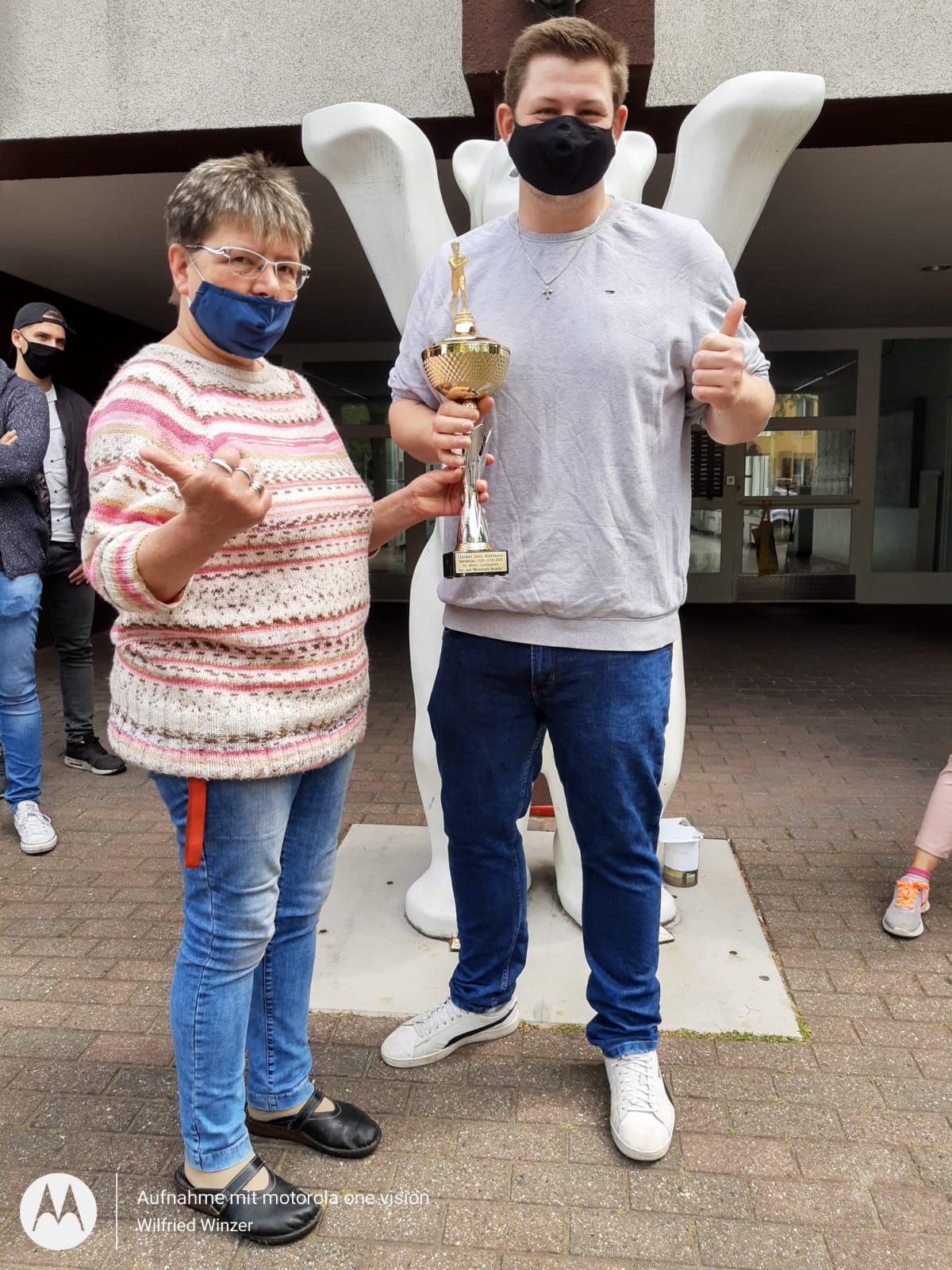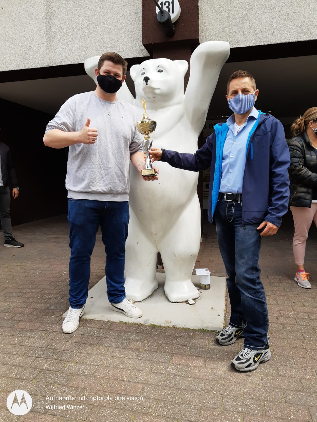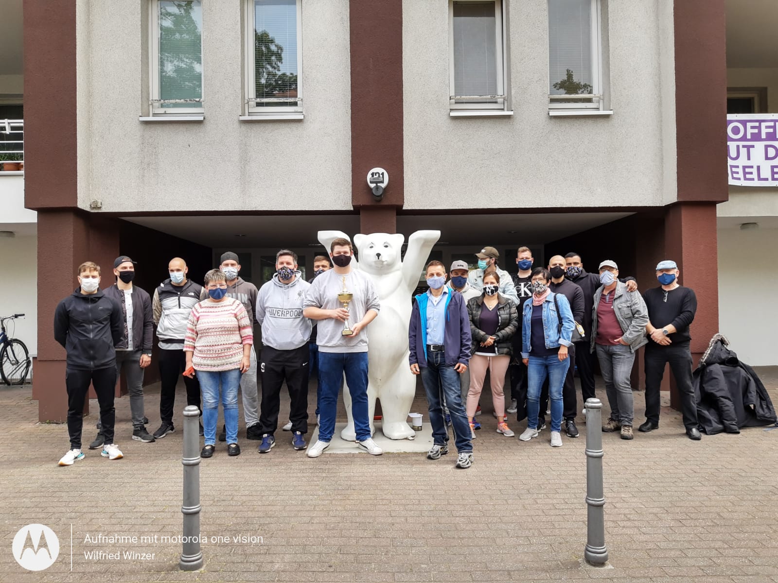 Am 10. Juni wurde Jens Kielmann unter großem Jubel im Diakonie Haus Britz empfangen. Mit dabei waren Kameraden seines Sportclub BSV Grün-Weiss, dem Ehepaar Michaela und Hartmut Trottner (ehrenamtlich tätig für die Aktion Lunchpakete) sowie dem Initiator der Aktion Lunchpakete sowie Leiter des Haus Britz und Armutsbeauftragten der Diakoniewerk Simeon gGmbH Thomas de Vachroi.